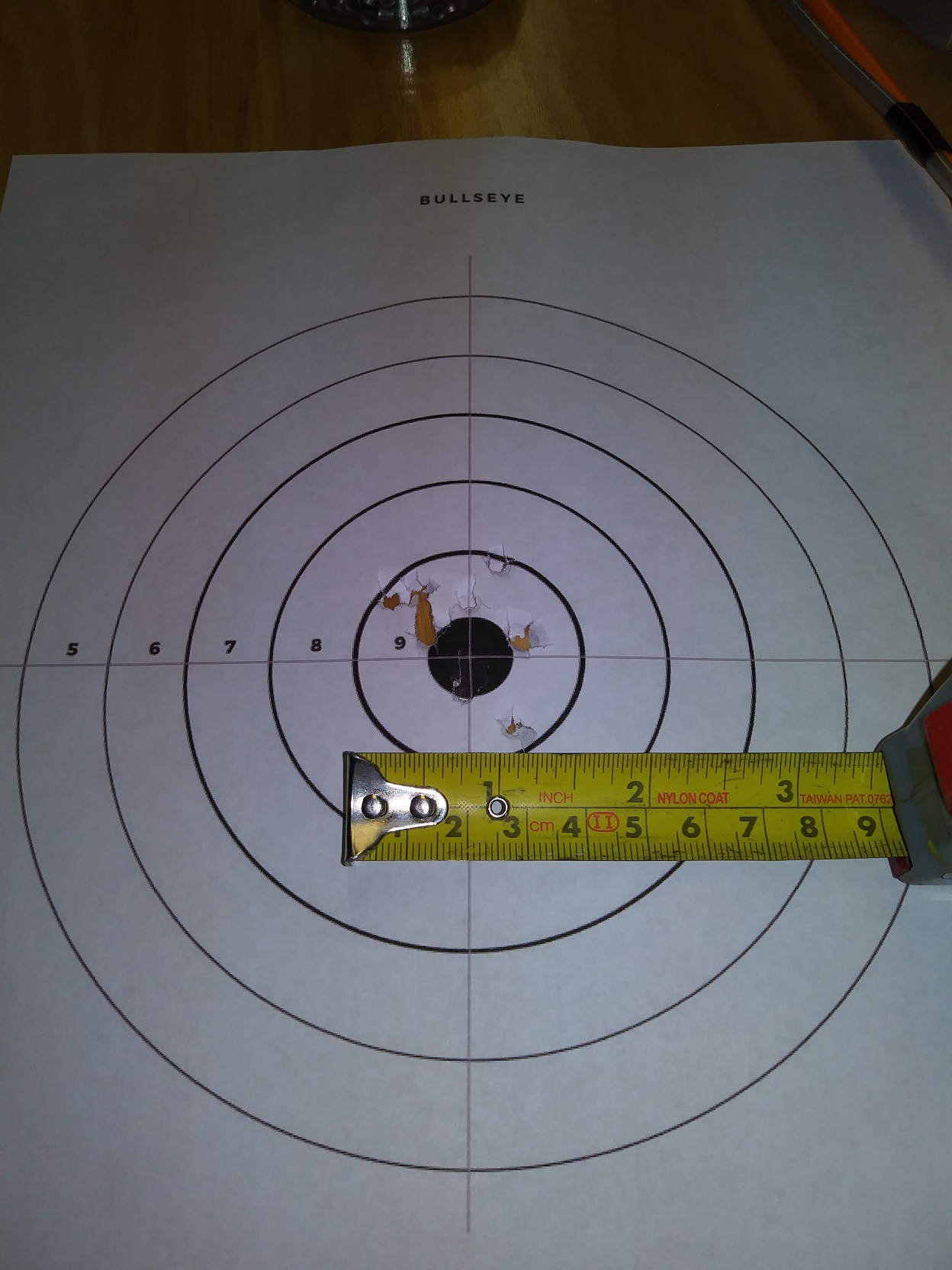 Target at 9m, gun on a rest
