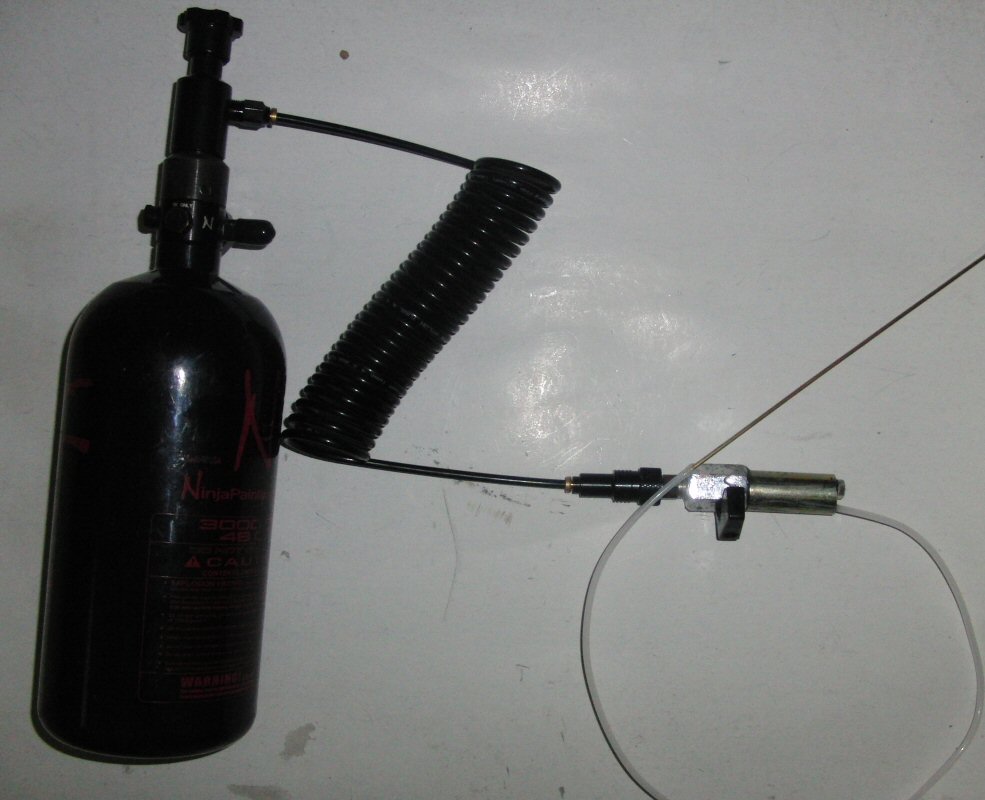 Finally I put together something that is reliable and light enough to be acceptable as the "gun" element for this project. The concept is one expressed earlier and looks something like this: