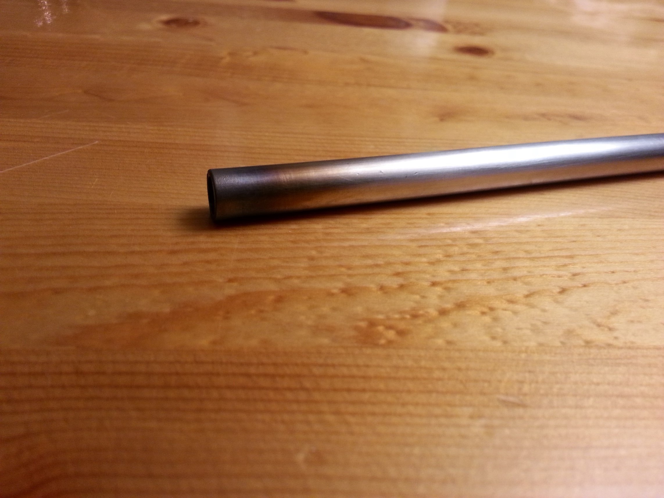 Managed to Tig weld a piece of 1/8" thread to the barrel without destroying it :shock: It's somewhat straight but I won't be using it in the Olympics so I think it will work.