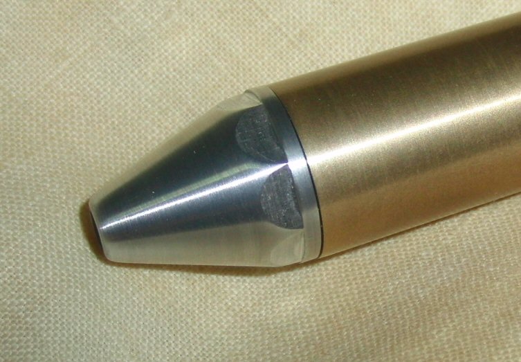 I didn't do the same on the valve plug because I wanted a large surface to easily insert a wrench without risking to dent the rounded part and ruin the finish. The nose is not supposed to be removed as often so it's not a problem. Also, having it round and flush on the side of the body's edge, but not on the cap's edge looked awkward to me.