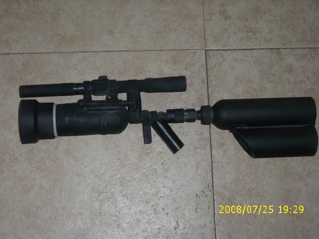 Yes, for now, but When I do use this in battle, I will have a Big backpack tank that should last for about 1 game, That I can fill up the chambers quickly. And as for the black part of the paintjob, I think I will just paint the entire thing black.mister pointy wrote:Your gun looks good, just needs that paint job you mentioned.