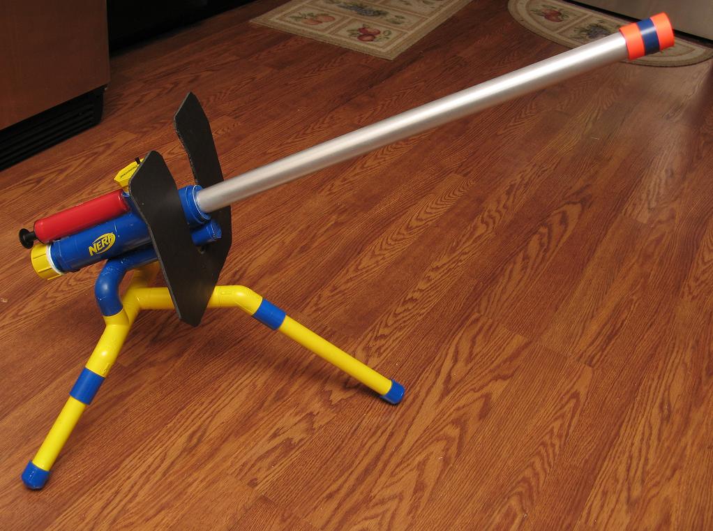 I thought of a little differnt setup, REALLY low power but enough to shoot empty 20oz pop bottles. Alot more quiet and i can do it in the back yard without causing to much of a problem. Unless they think its real now?