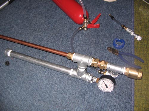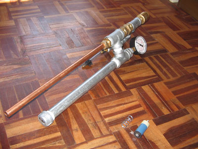 I tested this by putting a fire extinguisher onto the fill port so I could fill it to a selected pressure instantly. When I did this all the air leaked out from the barrel and small leaks here and there. But I did manage to fire it quickly, it shot a small piece of paper to the other side of the room as fast as a springloaded bb gun. That was just in the first inch of the barrel.