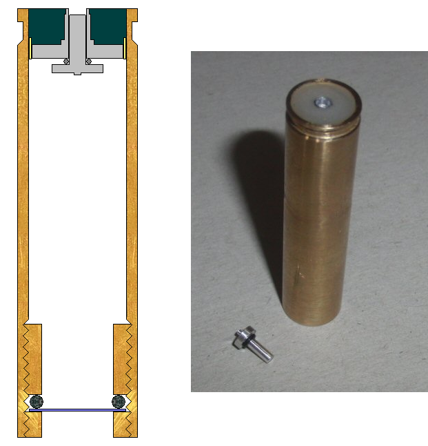 Still, the "valveless" principle is too good to let go of without a fight. One thing I thought about was threading the outside of the cartridge in order to connect it directly to a schrader adapter, but it would be easier to just make a smaller fill rig directly.