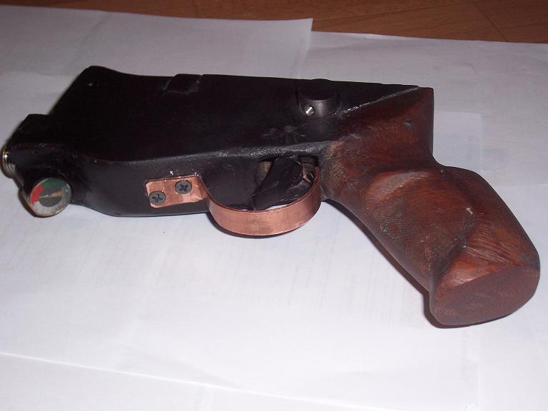 Second was at the old "body"I made for it, wich doen't fit it's current shape.The body's only function was to try the hammer.Again not clamped down.This too took off-------------------------->pachooooh
