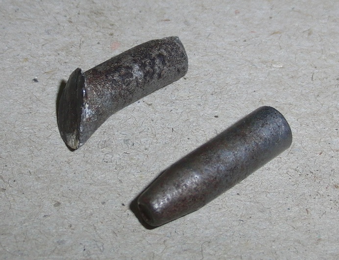 More than a couple of months ago I had fired a steel core from a 7.62 AK round at a steel plate, it zinged off and never found it... until today! Here it is next to a relatively intact example: