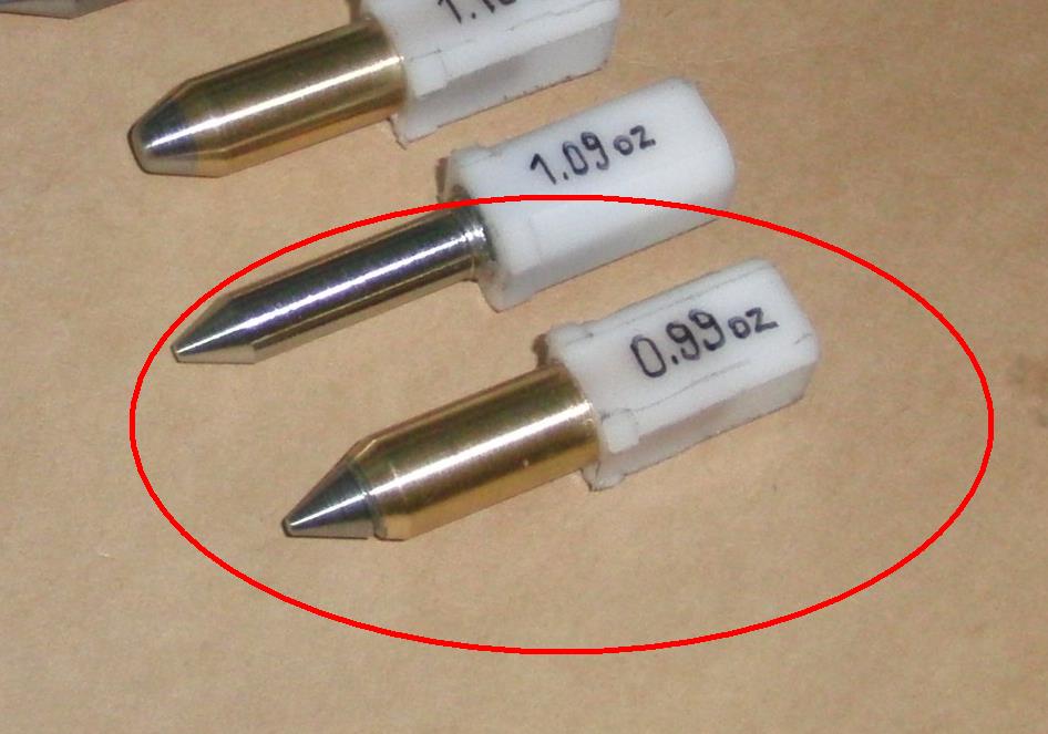 12g CO<sub>2</sub> capsules cut in half and weighted with lead'n'epoxyprojectile
