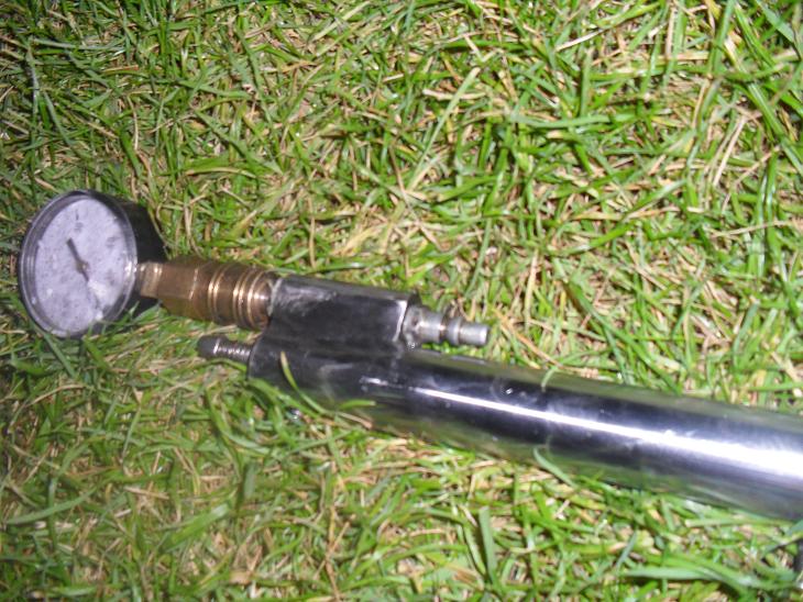 The barrelport and breech are threaded at 1/4" so I could fill up the gun from the valve up and attach a gauge as I plug the barrelport.