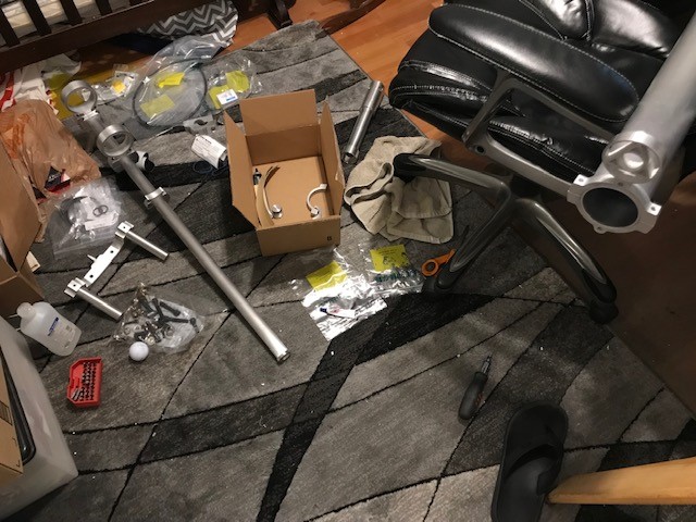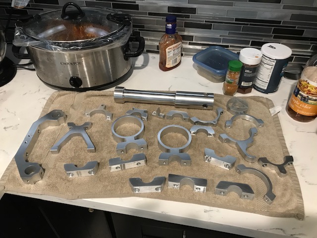 Hard at work tonight. Assembly going well. I had to turn an egg-shaped pipe to be semi-round with nothing but sand paper. Guess how hard that was. My next project is to buy a lathe and mill for the garage. That will take a while though, lol.