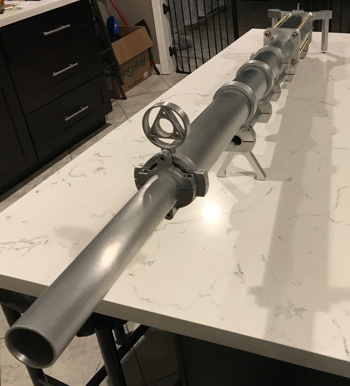 The uncertain news is that with a pilot pressure of 20psi, that should result in an opening pressure of around 135psi, but air starts to escape past the piston sealing face at around 50psi. My hope is that the volume of leakage is small enough to not wreck performance since combustion takes place so quickly that it may not matter much. I know some pneumatic cannons have air leaks and they work fine because the leak is small enough to not matter.