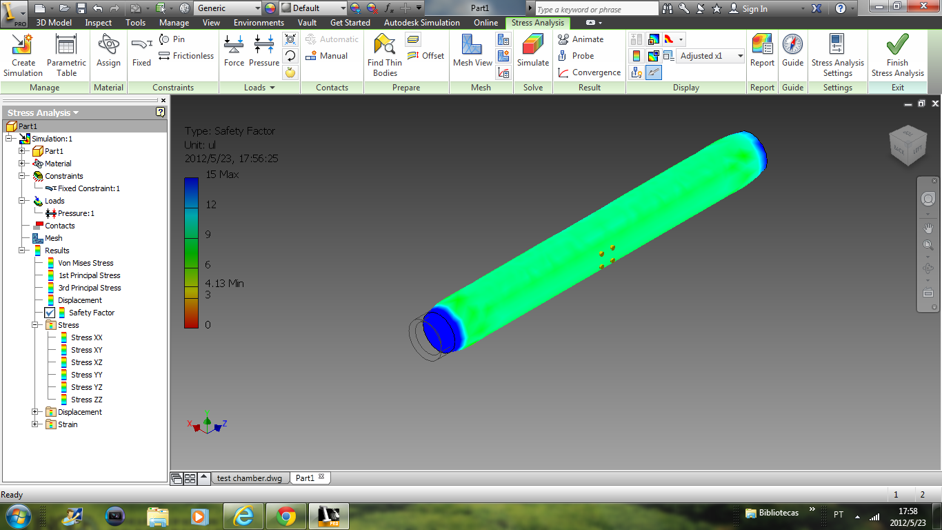 It shows a minim safety factor of about 2, but I can see the chamber gets deformed quite noticeably