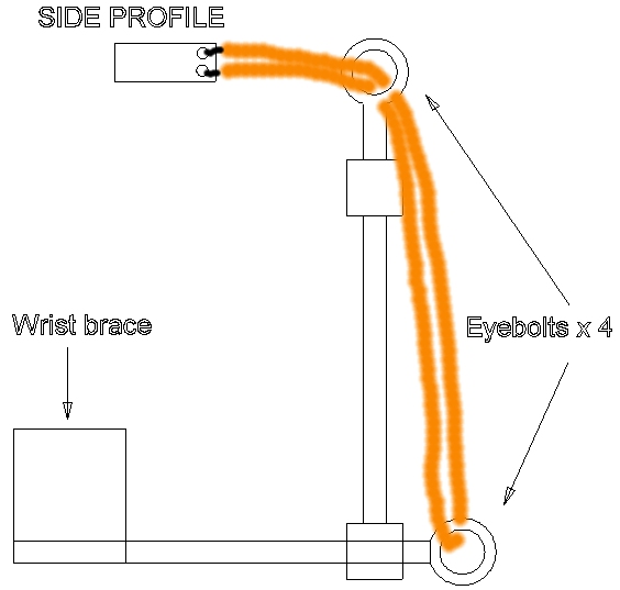 Anyway here is a diagram of how I might modify your design to give an extra bit of 'stretch room' for the bands, do you think it would offer a significant advantage over just using a thicker band on the original design?