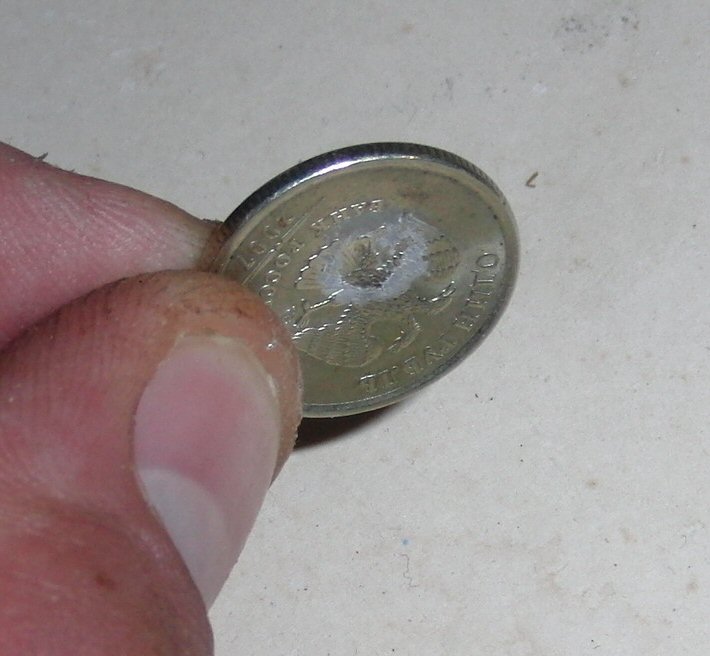 An attempt with a near-molten coin would be highly entertaining, but for obvious reasons not deserving of the prize.