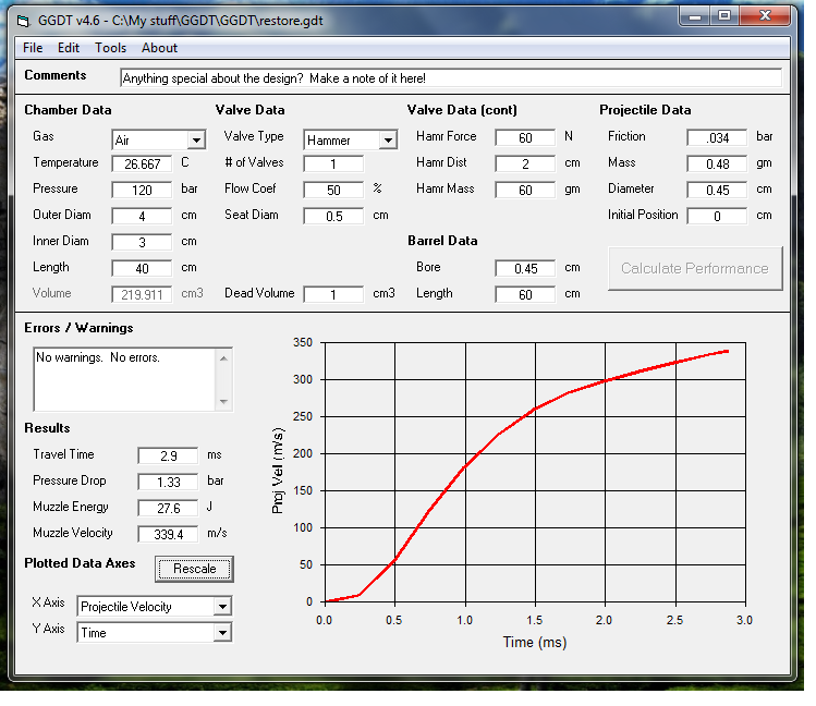 Range will probably be more than that, think I had to use a Cd of 0.25 to match the real-life results from a pneumatic to GGDT predictions. I don't see a golf ball going further than 600m at the velocities we're used to on Spudfiles so you might get close to that as 400m is a realistic range from a piston valved pneumatic or advanced combustion.