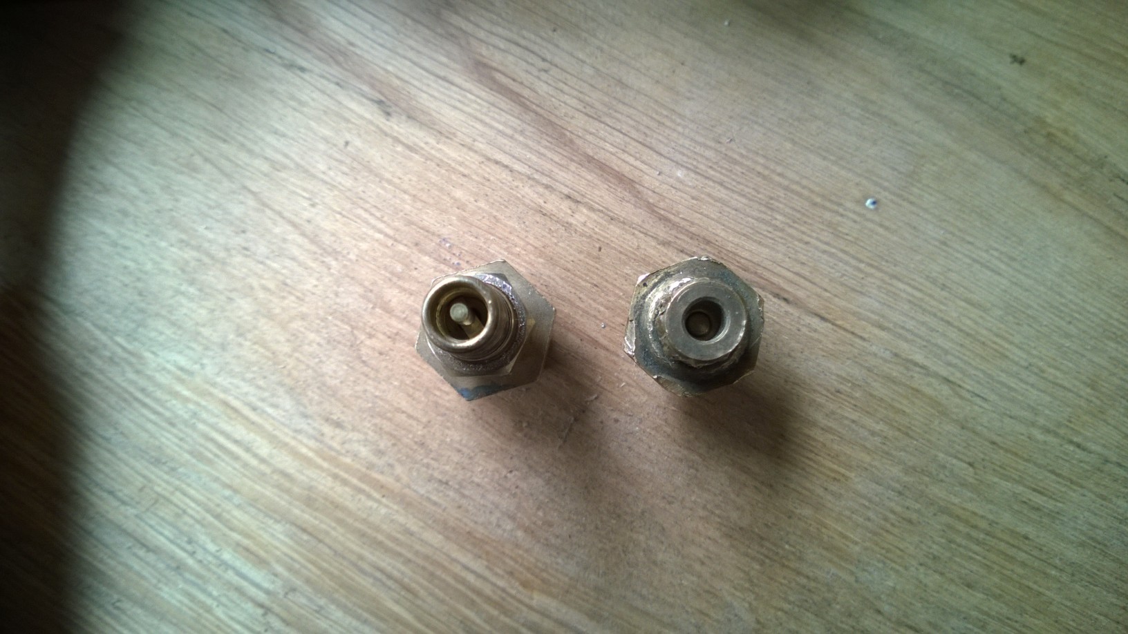 The fitting into the main cylinder is only small and I don't feel like changing it at the moment, as you can see from the photo compared to the Schrader valve it is small, but I will drill it out as much as I dare.