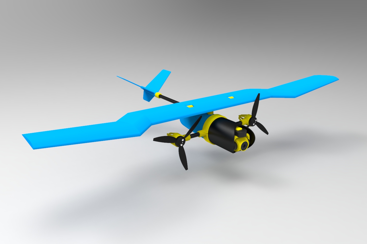 I like the design, why the inverted gull wing on the fixed wing configuration though? There doesn't seem to be any practical benefit. I would have the wing in line with the motor nacelles to reduce drag, then maybe have a gull wing to increase stability.