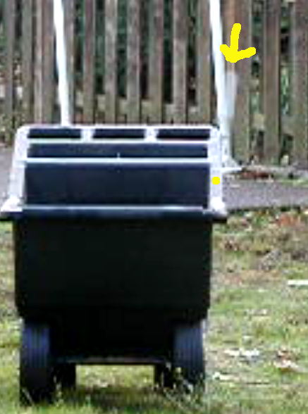 Edit, I played some more today and had much better luck on precision distance shots. Due to the size of my yard, I setup for some 10 yard launches. The change I made is I used a larger barrel and a foam sabot. This permitted less air than will empty the barrel to be used. In all my testing the sabot was never ejected. I don't have a stand yet, so I was simply leaning it on a sawhorse. After I got the distance dialed in, I grabbed the camera with low batteries and got a quick shot. The distance was right on, but due to using the sawhorse, I missed the center and hit the rim of my garden cart. With a fixed stand this could easily put the golf ball in a bucket at 10 yards.