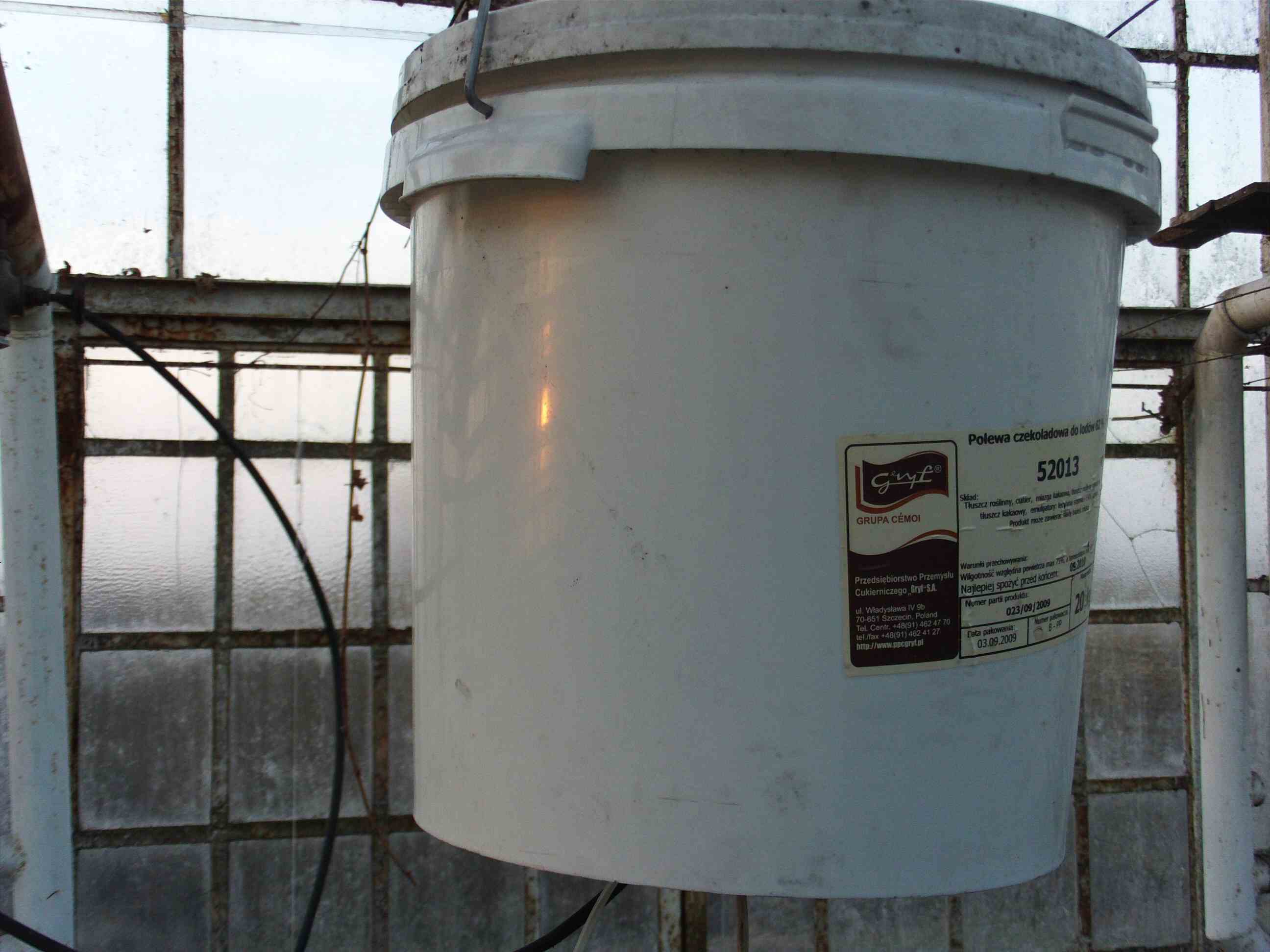 as I said eariler, it's as simple as it gets... a plastic bucket with a hole cut in the bottom for cables and tubing...