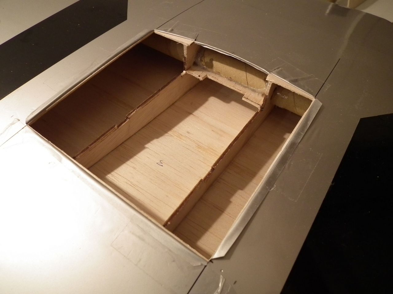 I had to first remove the plastic covering from the wing, then remove some of the wood covering to get into the structure.