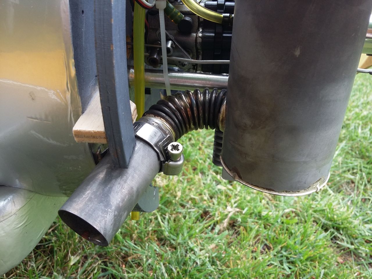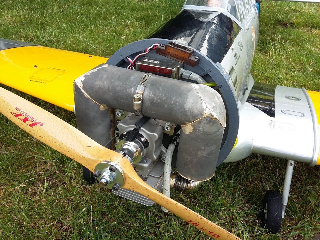 I had to make a new exhaust for the engine to let fresh air from the propeller enter the cannon air intake.