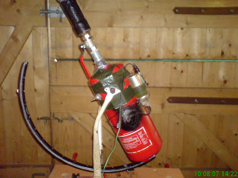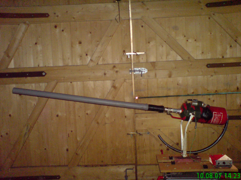 Super cool gun. You must have done your homework before building that thing. I would suggest attaching everything together with big hose clamps, as it will look better than tape and hold up better.