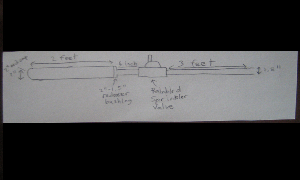 Ok, a two foot long 2" tank with an endcap and 2"->1.5" reducer bushing then a rainbird 1.5" sprinkler valve (can someone help me find where to get it?) and then 3 feet of 1.5" pipe. This should all be pressure rated so I can launch at 100 psi right? One last thing I need to know is, where should I put the schader valve and the psi gauge, also what is the difference between SCH40 and SCH80 and would it matter if I only want to shoot up to 100 PSI?