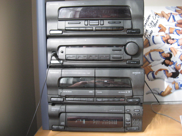 Stereo setup, ignore the cheerleader poster, I got it signed when I was a tender age of 14 and felt very cool at the time...