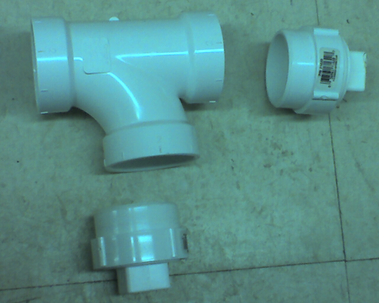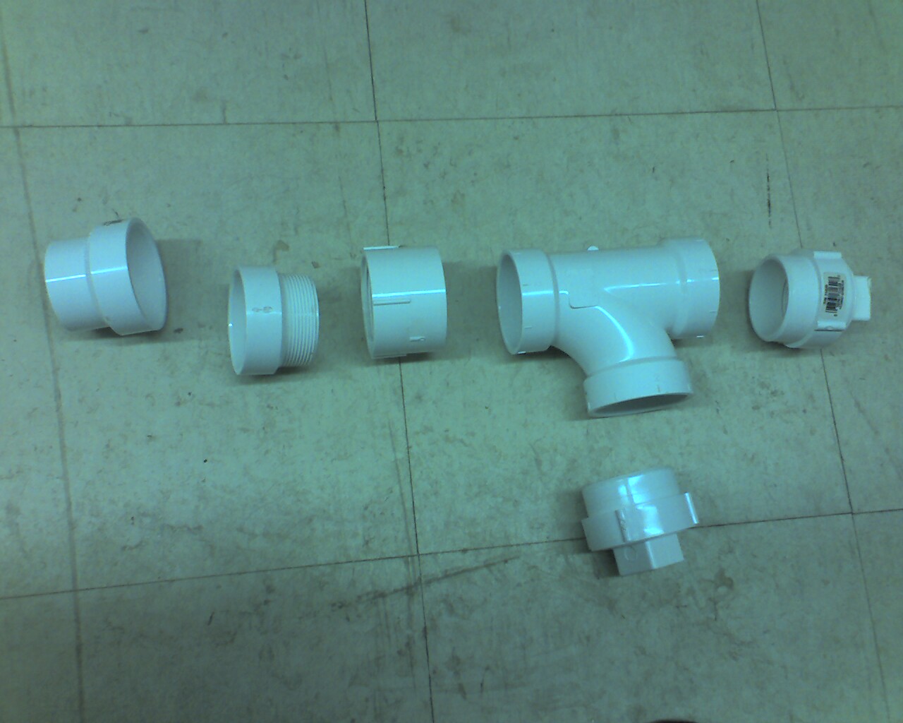 Check out the picture for the idea I'm going for. The 2" PVC pipe itself that would be needed to connect a few of the parts is missing of course, since I did this on the floor of the hardware store.