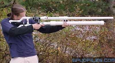 This launcher is incredible. It's design and look alone is intriguing and intimidating enough to give any potato the willies. It operates like other pneumatic launcher, except this is built to simulate a rifle. Air flows through the angled stock, from a chamber underneath the barrel. A breech loader has been added for ease of loading projectiles.