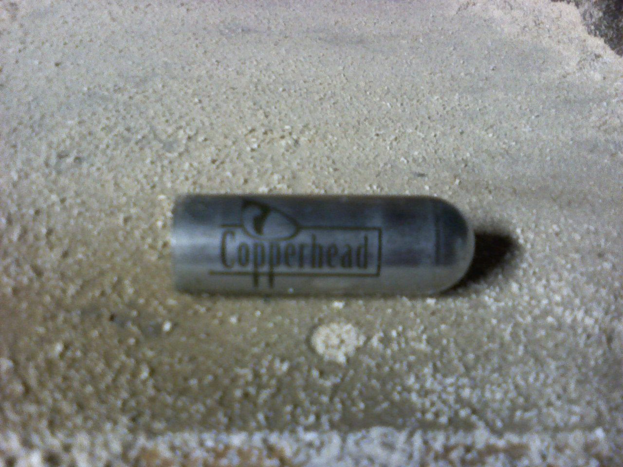 These are some slugs that I made out of 12 gram C02 cylinders (they were copperhead brand, that's where I got the name). They are extremely accurate, and they have quite a bit of power. I cut off the nozzle side of the cylinder, then hot-glued a marble into the nose of the tube with the rounded off end. They were very easy to make, and work very well. The marble is in the nose because it adds weight to the front of the cylinder to keep it from tumbling in flight. Each cylinder is about 2 inches in length, and they fit very well in .75 inch pvc (but a little tape would help). Enough said, here are some pictures.
