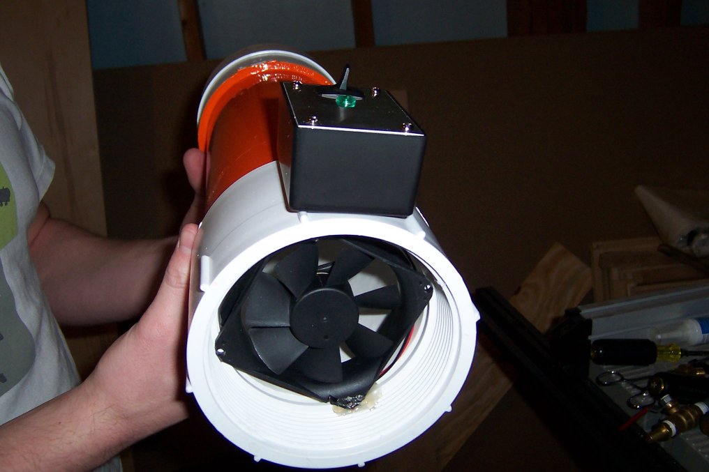 - 80mm computer case fan, with 9v battery and switch mounted in project box