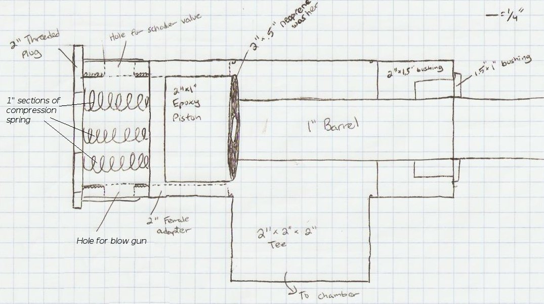 I have a few questions though. As far as the threaded fittings, could I just use PVC cement on the threads to make a secure permanent attachment? Also, because I want to put a stock directly behind the piston, could I drill the holes for a Schrader valve and hose barb (to attach a blow-gun) through the side of the female adapter after I cement everything together? This way, the air would be entering and exiting behind the piston itself but the valves wouldn't have to stick directly out of the back of the end cap (so I can make my stock there). Also, will a thin epoxy piston (like 1/4") be ok? The epoxy tube I bought contained less than I thought :oops: .