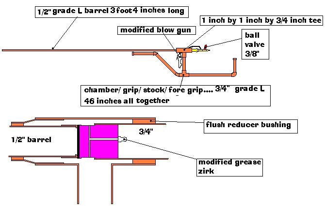a few more things to do to it.....not really done yet. still need to put the bolt action sleeve on it, a screw together grip that will cover the blow gun and attach it to the chamber, and some sort of an attachment for the fore grip to the barrel for a little better rigidity. still thinking of more mods...but so far....it works..so YAY, thanx for your compliment by the way