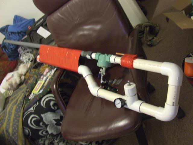 Haha, I get the hint. The tape is just a placeholder till I figure out something better to secure the barrel to the chamber.obscure fact: every inch of pretty orange tape adds 50 fps and an additional 100' of distance.