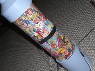 well, here it goes......After a week of studying this website and the burnt latke website, and my fiance tellin me i'm childish...this is what i came up with...its almost finished...i was gonna go with the camo paint like that one guy on here did with the leaves and stuff (good job man!)...but i had a bunch of garbage pail kid stickers lying around and i thought it would look kool....i'm using meterd propane...i think i'm gonna feed it in thru the endcap with a shrader valve. i still have to house the wires for the fan and ignitor..so its not completely finished yet..should be done by later today, and i'll post a pic or 2 of the finished product...i have a feeling i'm hooked now, and will probably build another, and another,.......see where i'm going?..lol...i know i should have placed the ingnitor screws where its double layered, but i kept reading that its better to place the ignition in the middle of chamber...anywayz here are as much specs as i can think of for the moment...