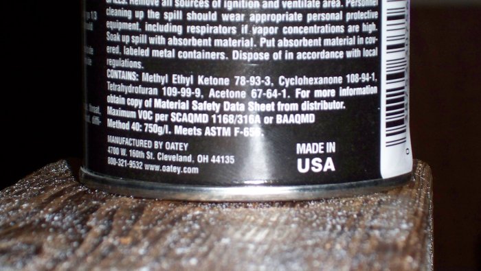 That's funny... I've been back in the hobby since January, that's all I've used is the 'yellow' Oatey. I didnt know that about the building codes, learn something everyday.