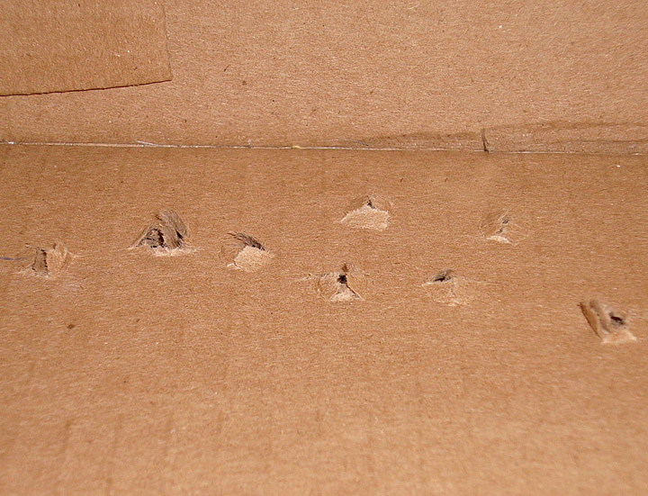Showing damage from the mini to a cardboard box using the metal bullets