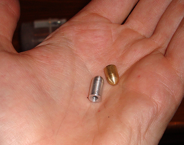Hand made aluminum and brass bullets for 1/4" bore.