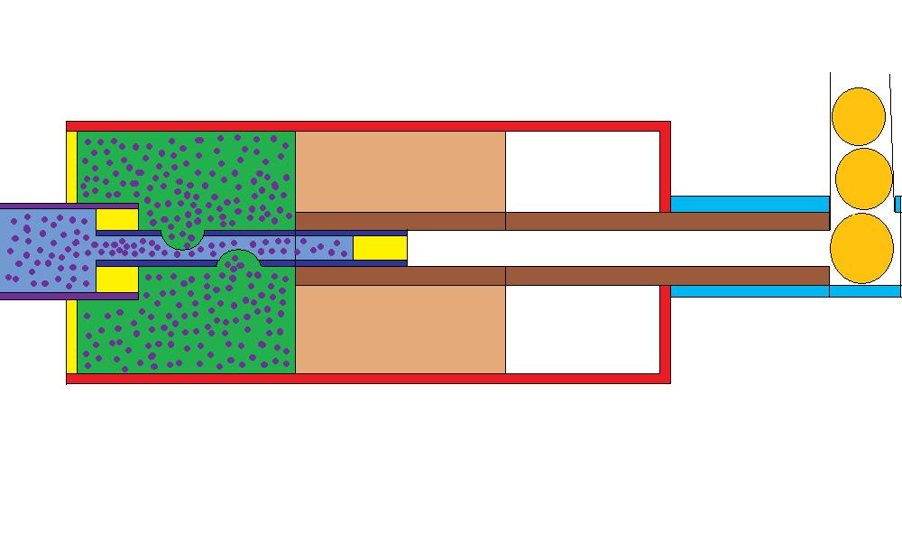 - This is my valve in Paint, the purple dots are the high pressure air, the blue tube has holes to allow the air out, but the end is blocked with the yellow epoxy so no air goes directly to the barrel. The large pink area is the plunger, the air pressure pushes this forward and air is allowed down the brown tube which pushes a bb forward and then fires.