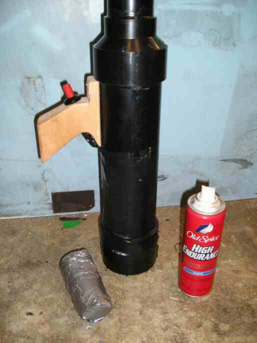 as you will see by the pics, i used a BBQ igniter, wired with 14ga solid core copper wire. I made the handle from a peice of 2x4 and sanded down. I know its super simple. My choice of fuel is the Ols Spice High Endurance body deo spray. I used starter fluid(too slow burning and kind of poofs no matter how much or little i use) ,hair spray(too messy and gummed up contact after 10shots), i tried propane(blue plumbers torch and the yellow mapp gas) they both work but again tempermental. the body spray works every time. I've even let it sit for 30mins ,sealed, and came out and it fired on first try.