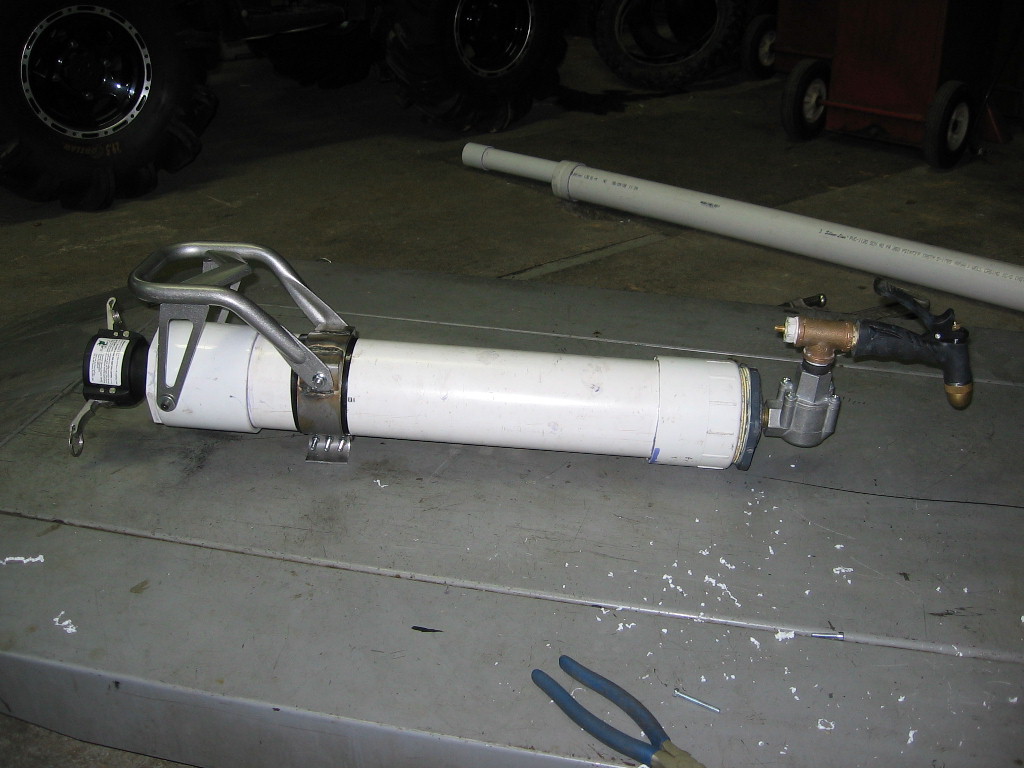 Just for poops and giggles, I made a 10' long 1" barrel for it, way overkill on the chamber/barrel sizing, but I want to see how far and fast I can shoot a c battery or a superball... I'll prolly end up shooting this barrel a coupla times and then cannabilize about 6 ft of it for smaller coaxs, I'm getting lots of requests for them...