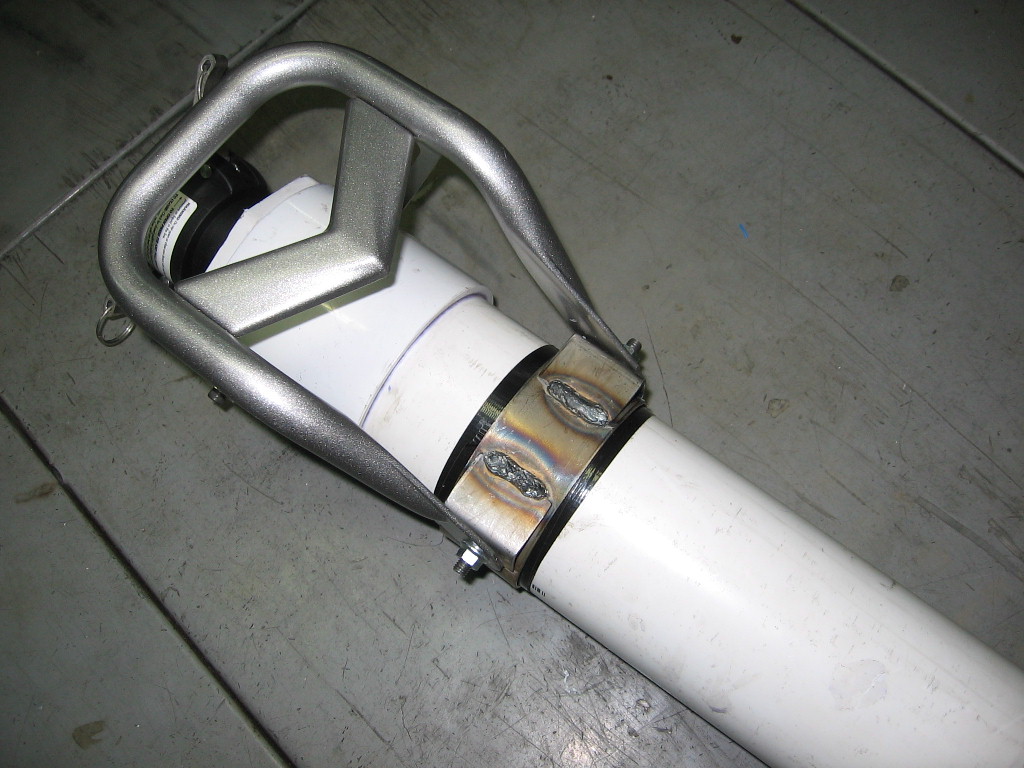 The handle is the front bumper from a 4wheeler, the strap I built myself(who needs to BUY large clamps)...