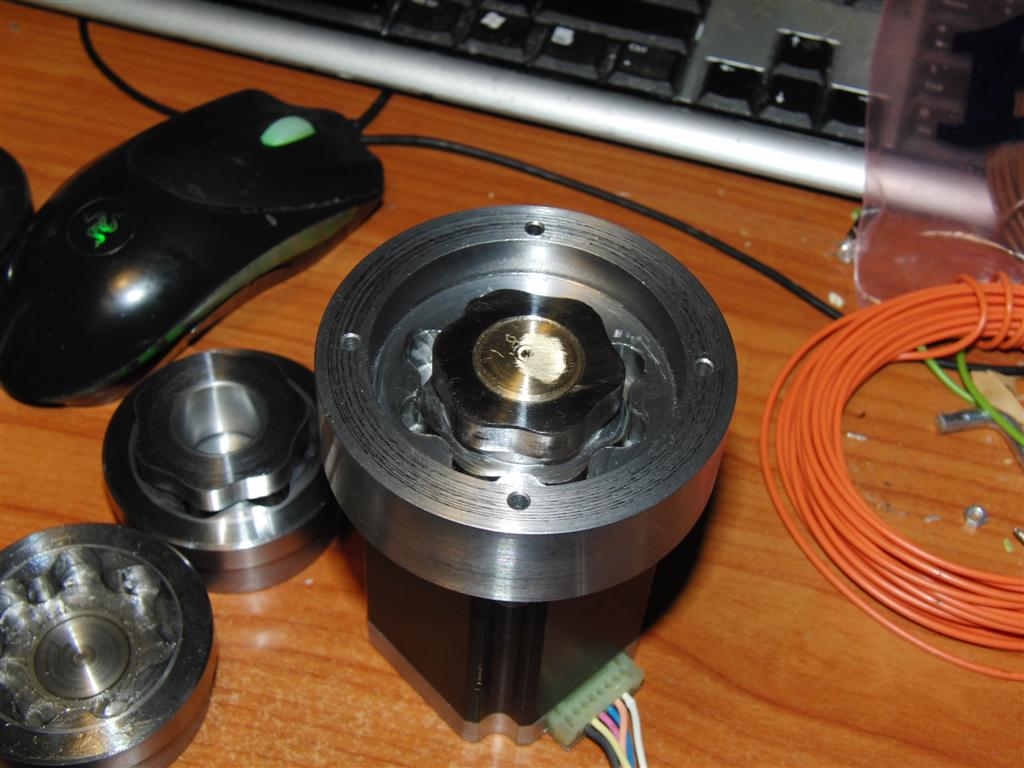 Its a two-stage Hypocycloid gearbox with a ratio of 49:1 its machined out of steel and mounts directly on a Nema-23 stepper.