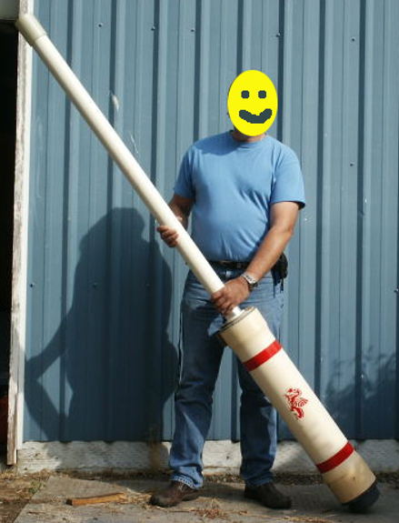 I haven't posted it because it is big heavy difficult to hold. It has a 2.5 inch barrel so the muzzle end of the chamber used a 6 to 4 inch reducer and a 4 to 2.5 reducer. The breech end uses a 6 inch to 4 inch sched 80 reducer, a 3 inch threaded female adaptor with a short length of 3 inch pipe for a piston cylinder, and a 2.5 inch pipe cap as a piston. There is an o ring on the valve seat like the Mouse Musket and a ring in the wall of the cylinder.rcman50166 wrote: