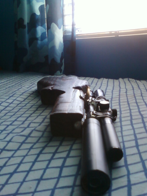 Seriously tone it down with the double posts, the mods kill for that. Anyway, the stock seems very... ummm... don't know the word... compacted? Squished? Is that the way you intended or simple a trick of the image? Anyway I still think its a sick gun, nice work, expect performace gains of 10x once you get that shocky and the QEV