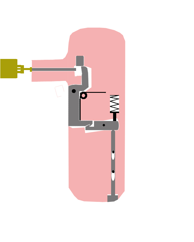 Pull the trigger, the middle rod gets pushed. Which pushes the longer horizontal rod, against the schraeder valve.
