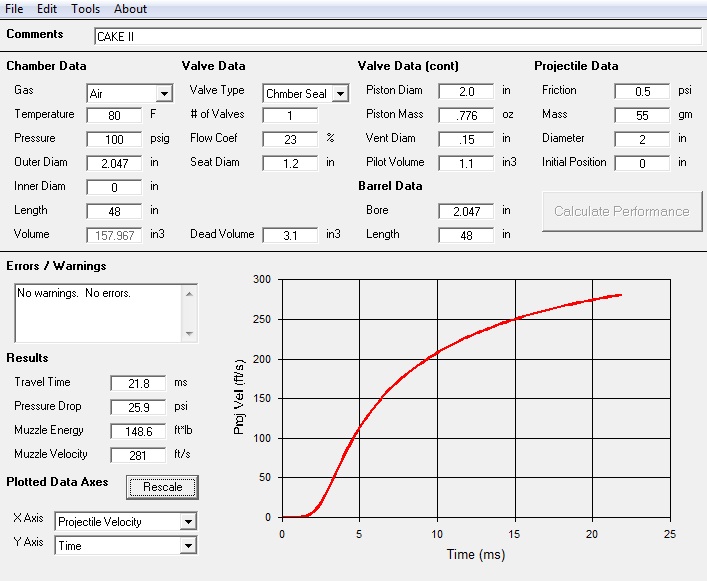 I have included the GGDT for launching a golf ball. Does it look like I entered everything correctly? The valve data comes from the GGDT website. The two things I wasn't sure about were the friction value, and whether or not I should change anything to account for the fact that I use wadding.