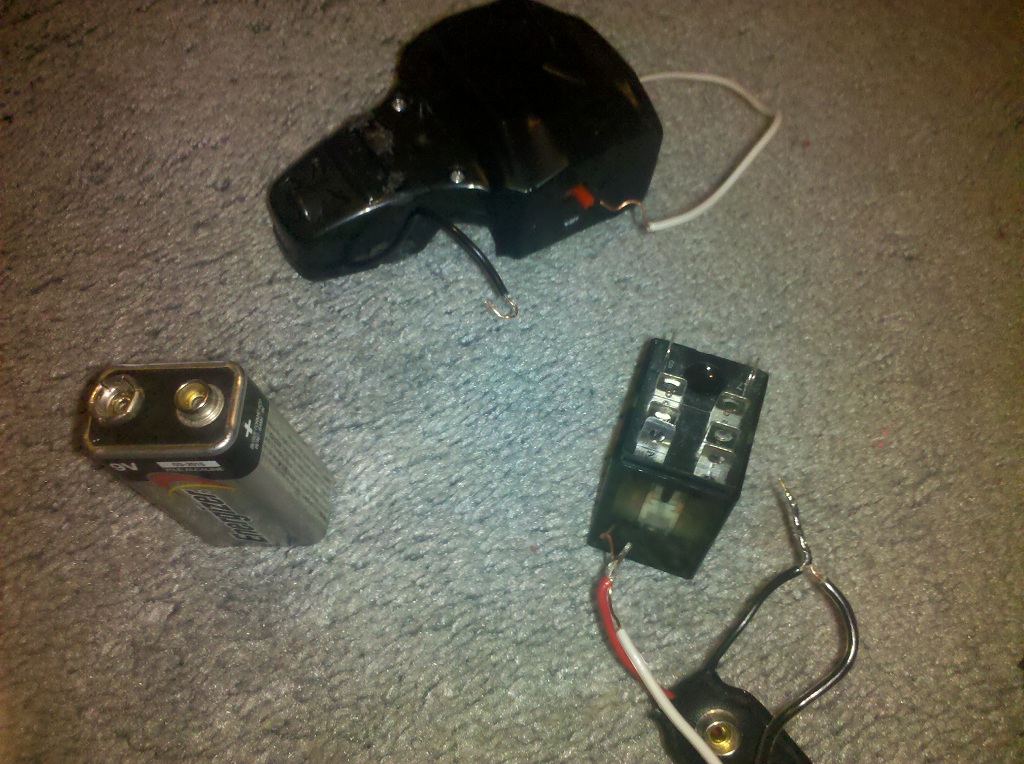 Last night I finished making my trigger and receiver out of an RC car (took a while, but finally got it. Im sure that everything works, as I have tested it out on the motor (some pictures when i get home. Basically, when i push the momentary button on the remote, it turns the power on the controller on. I have the ignition button for the RC car in full forward position (taped so it wont move to reverse) and when the car itself is on, power goes to the two wires that hooked up to the motor(i have them open so i could test it.