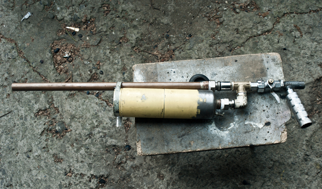 Nice launcher by the way, I like the ball valve trigger especially. And the particular photo lighting and setting, it looks like an improvised weapon in a post-zombie apocalypse wasteland :D