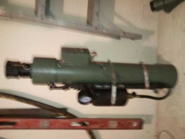 modified blowtorch nozzle with hose barb. and 600 psi gauge. injected with mapp gas.